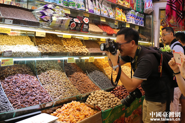 台湾美食生活旅游类外景摄影达人温士凯和同伴互动拍摄新疆美食。(中国台湾网 王怡然 摄)